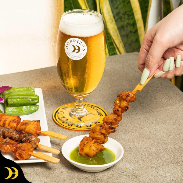 Một buổi trưa hay chiều thưởng bia đúng điệu không thể thiếu xiên nướng nóng hổi chỉ có tại HOPRIZON!